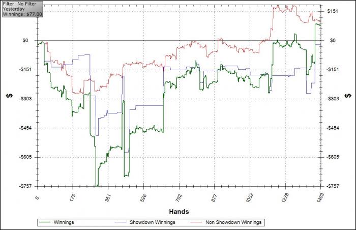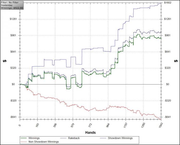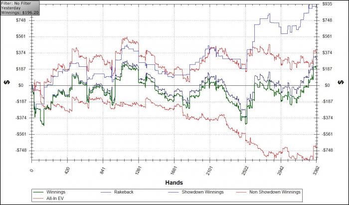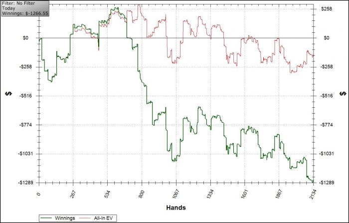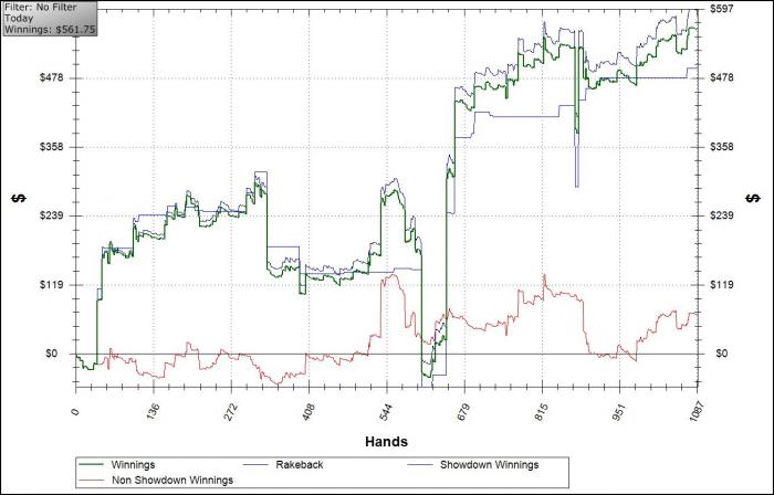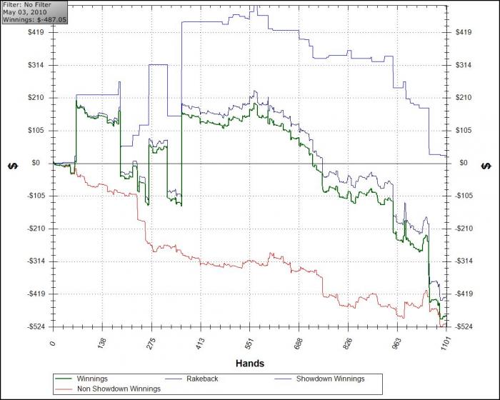 играл сегодня на ПС на девяти столах так как просто не было денег на акке, а из за этих долбаных лимитов не мог обменять ФТ на ПС.....в итоге даже может к лучшему) превращусь в нормального рега, а не рейк бойца.... вот еще надо конечно почитать и посмотреть водов, пообщаться с людьми.....как у них красная линия в низ не идет а все время около нуля, я не пойму..........у меня конечно сейчас она уже иногда по 1К рук держится на уровне или даже идет вверх, но в итоге все равно падает вниз.....надо работать над собой......крассная линия как я понимабю и есть вин рейт.