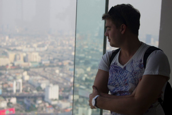 Бангкок - очень контрастный город. Вроде бы красиво и хорошо днем, но жутковато вечером и ближе к ночи. Т.е. прямо не в той степени жутковато, когда ты в 14 лет возвращаешься от друга через район ночью, а как-то иначе, когда попадаешь на улицу с проститутками, когда тебя хватают за руку и предлагают женщин. В таком месте мы с Сашей могли оказаться только случайно, потому что очень любим гулять, вот и гуляли :)