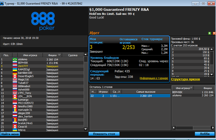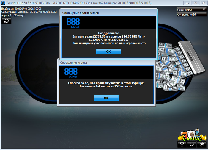 Несмотря на обидный риверы и занятые 7-8 места на покер доме, 888 наконец-то отдалось!