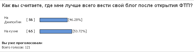 Итак, итоги голосовалки: Я очень уважаю ваш шовинистический мужской доминантный выбор и поэтому покорнейше повинуясь мнению большинства, удаляюсь...