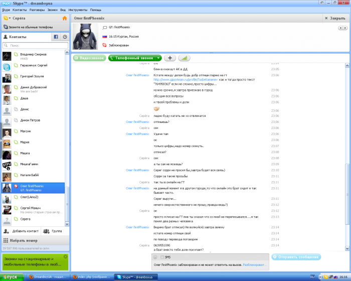 DreamBoyUA @ 24.10.2012 phoenix я добавил потом через часа 2 после, я в ГТ написал ему в личку и спросил у не го что б он написал свой скайп и потом я понял что это был не он Олег firstPhoenix