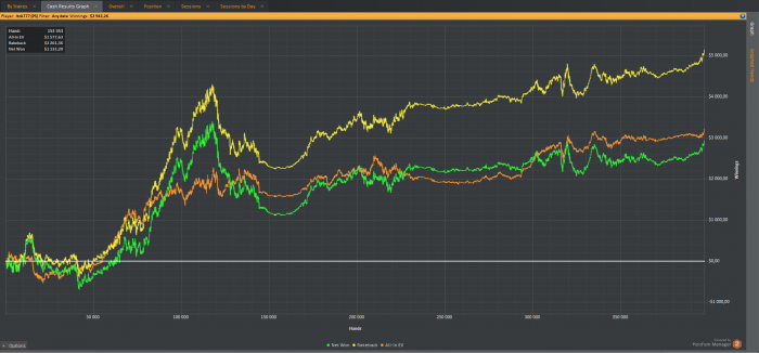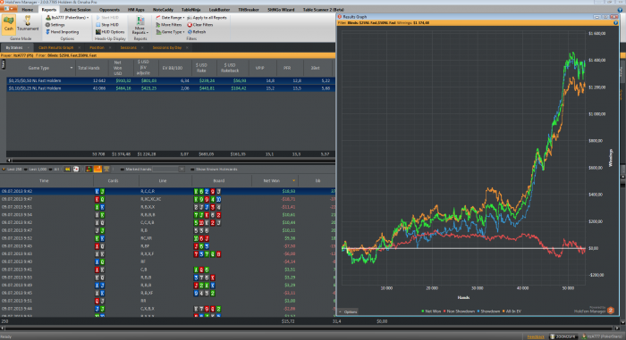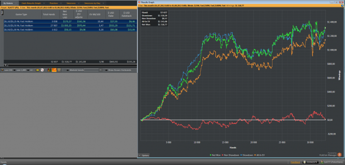 Пол месяца прошло так сяк, а сейчас снова появилась мотивация к игре. Оптимистичный настрой, хочется играть много. Воды и тренировки отодвигаю на второй план, пока всем отказывать не буду но прайс подниму вывел статистику по $/час. на нл50 у меня $40/час на 30к раздач. (по ев) не считая рейкбека