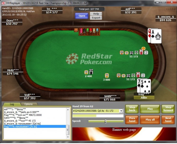 fragaLY @ 19.2.2013 Хахах,т.е. ты считаешь,что после 3бета на его 4бет я должен был выкидывать ? У него было в стеке 22к (около того),я поставил 3бет 10к+,пот 20к+,т.е. что мне после его пуша в пот 42к+ доставить 10к было не по шансам? Выкинуть типо ?! Ну ясно с кем я имею дело... Теперь у тебя было 130к,у меня около 70к,твои статы близки к маньячным , что не так ? То что ты не показывал маргинальных рук,это не значит,что ты не будешь стилить с БУ с ними и прочими руками ,чтобы после кола разыграть их в позиции? Не ссы мне в уши,что ты бы не открыл КТs в том же случае,это я к примеру,а таких рук,с которыми ты бы стилил ,было бы ТЬМА ! И большинство из них я бы выбивал своим рестил-пушем,что не так ? Да,тебе зашло,и будь у меня скажем QJ,я бы не пушил,а возможно сообразил бы что-то иное,так как рука доминируема часто будет спектром твоего кола моего рестил-пуша,и я посчитал ,что ой как зашибенно запушить в тебя,имея твой прекрасный имидж,и даже при коле я буду часто иметь не 30-% , а 40% ,и что тут не так ,батенька ? Иди анализаровать учись,учитель блин. И вот из этих БЫ и состоит весь покер,я играю так,чтобы выходить в плюс на дистанции,и это выходит.