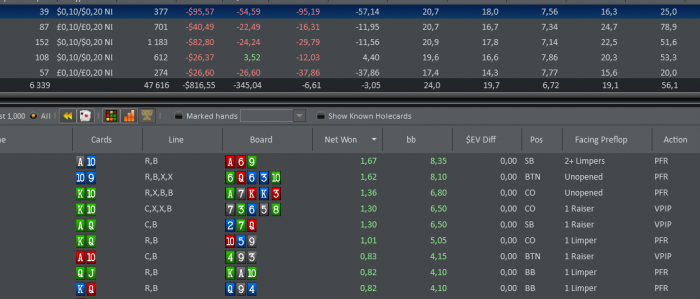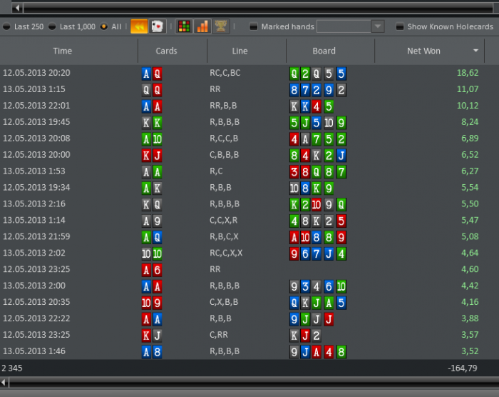Принял решение перейти в другой рум.Вот такое начало.Думаю мои дни в покере сочтены,отыграю тысяч 10-15к и посмотрим на результаты.В жизни слишком много всего интересного,чтобы терпеть это говно.По факту минус 3 стэка.Теперь я играю со стоп-лоссами
