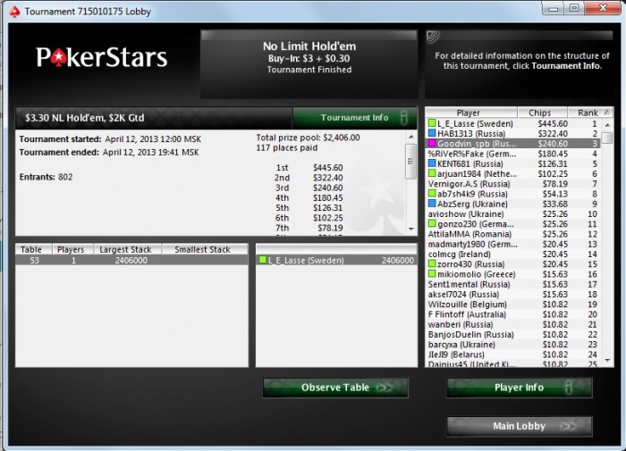 PokerStars No-Limit Hold'em, 13.5 Tournament, 150/300 Blinds 40 Ante (9 handed) - PokerStars Converter Tool from http://ru.flopturnriver.com