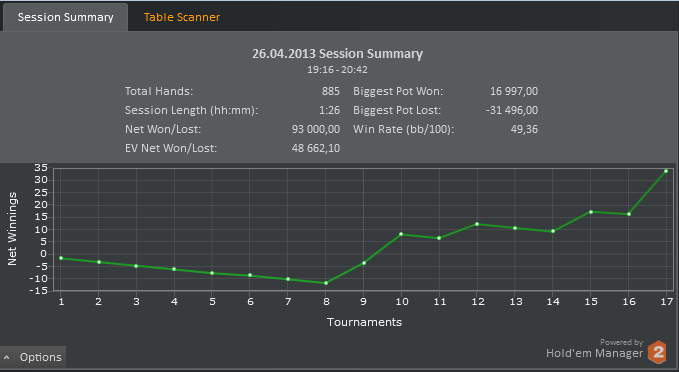 Спасибо) 1,5 на 45, на 18(оба турбо), 2,50 на 90 и 180(турбо), ну и мттхи до 4,40. Посмотрю как они заполняются, что-то возможно уберу. Зона итм в турнирах за 2,50 на 180 человек довольно таки солидная, их полюбас шпилить буду, если бр проседать не будет) А если минусово получится, то и их уберу)
