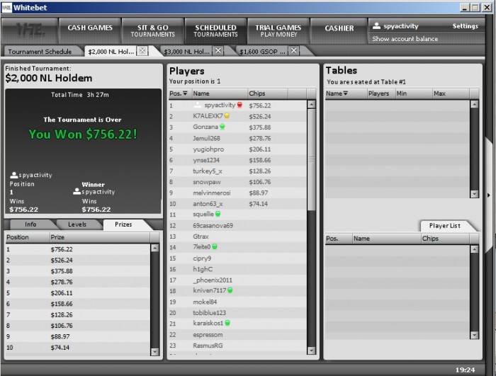 SB bobish888 (8,120) BB spyactivity (8,670) Blinds: 40/80