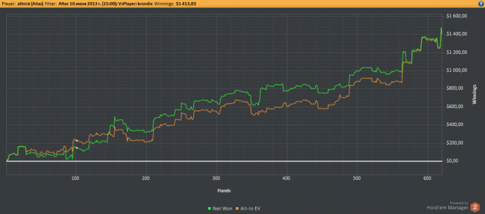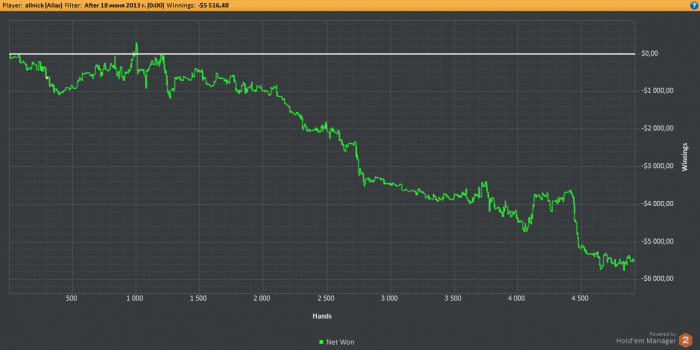 Только установил HM2, чтобы быть в курсе сколько bb на сто рук снимаю, EV и т.д Когда увидел 36 bb/100 по Plo Hu 0.25/0.50 за последний месяц, подумал вот это я крут, добавил линию по EV, какое разочарование, не хилый перебор на не малой дистанции, там оказывается 20 bb/100.Теперь наверняка на лимите выше дистанция меня поимеет) У кого-нибудь такой перебор был на 45000-50000 рук?