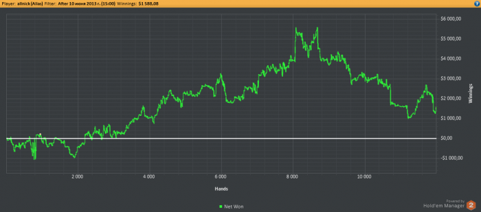 Катка катушечка ))) на этой неделе играю меньше(на прошлой было 12.5к рук, сейчас всего 8), причина тому - много выходных ) если в день играю больше 3к рук(выходит около 8 часов), то на следующий как правило день играть вообще нет желания. Пытался в такие дни отдыха разбирать раздачи, но после просмотра нескольких сразу хочется играть ))) В целом отдаваться стал гораздо меньше, некоторые мувы стали тоньше, с регами играю хорошо, но определенно эксплойтить пока могу лишь действительно слабых. Не дорос еще до норм уровня.