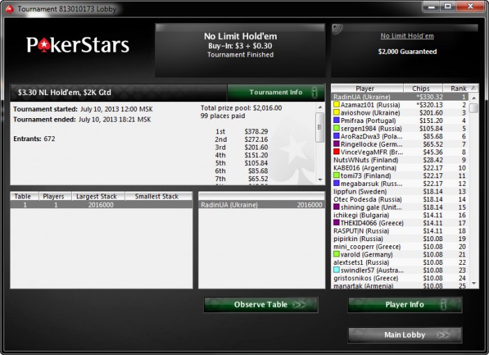 Я уже очень давно хотел выиграть этот турнир, но удавалось дойти только до топ 2. Хендз-ап прошел очень быстро, у меня было больше фишек, к тому же оппонент сделал неудачный стил пуш и нарвался на мои