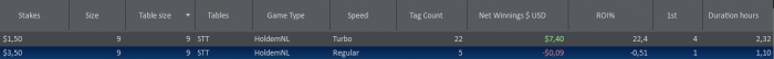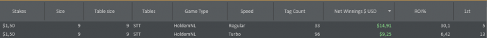 Почти та же наркоманская поляна, что и в 1$ вкупе с неплохими 15мин. уровнями думаю мне по зубам. Моя задача проста к концу месяца иметь ROI >20% на дистанции не менее 50 турниров.