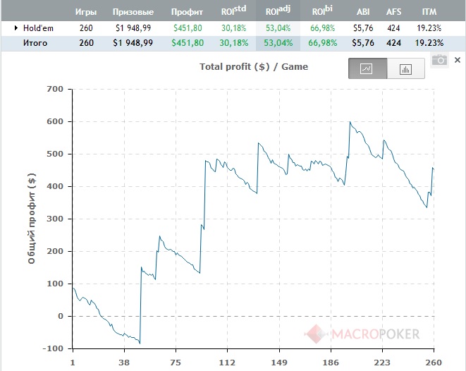 Февраль. Ужасный месяц. Не по результату, а по игре. Ужасно играл. Много глупых ошибок. Поразбирали руки в конфе, всё поняли, всё осознали, будем работать. 888 порадовали инста бонусами на сумму 260$. Неплохая такая прибавка к профиту Ну и скрин: