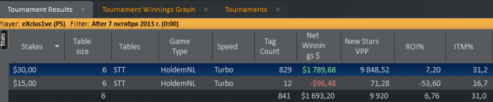 5) В случае просадки банкролла на 2000$ игрок спускается на лимит ниже(15$) и играет там до увеличения банкролла до 2000$. После чего вновь играет 30$. В случае очередной просадки цикл повторяется и так далее.