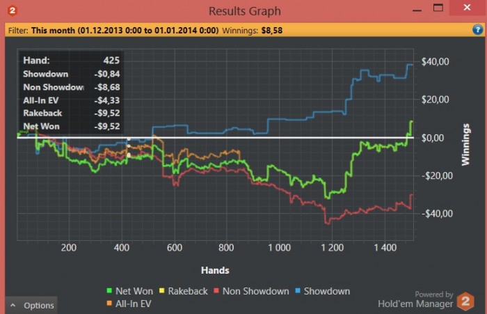 Очень сложно дается третий игровой день, но хочется уже не минимизировать издержки, а подниматься. Кардинально изменил стиль игры, а график остался прямой, даже не единого намека на правильность действий. Тильт по-ходу начинается. Пробую сосредоточиться и забыть все неудачи...