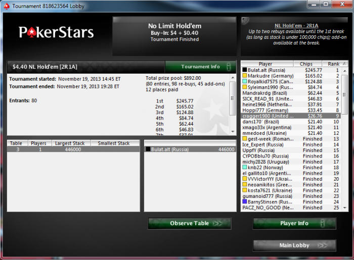про другие года не помню уже, а эту неделю наверно больше 1к стабильно прогружаю каждый день. но чето стрик меня порядком достал, так что наверно биг по 162 с сатами на него играть не буду, лучше тупо регулярки играть ребайные относительно дорогие. биги эти шляпа, один фиг турбина. вчера кстати в топ 20 закончил ночного 22$ 1р1а. за 2 дня надо выиграть еще один степ 4, чтобы и на СМ и на вармап не волноваться что не отберешься в ходе сессии и спокойно саты гриндить. про ИТМ хз, не шарю, может не такой и крутой этот показатель.