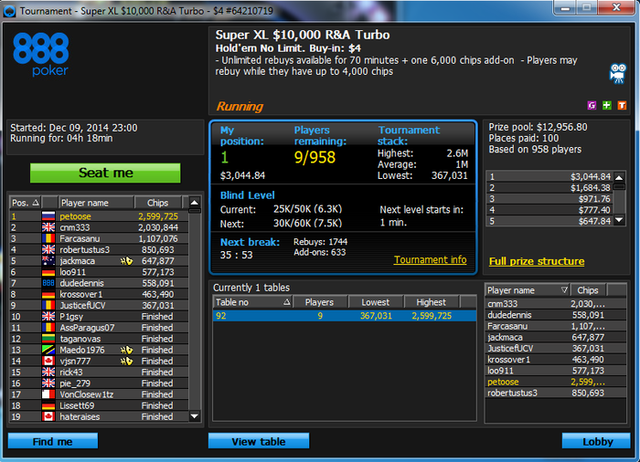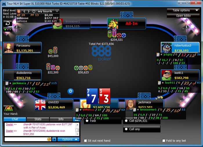 Я с тобой согласен, но турнир уже шел и меня автоматически зарегили. Так что пришлось играть!! Была одна проблема, что мой ХМ2 (купленный честно), то есть его версия не поддерживает игры на лимите по-моему 100 $ и выше.=((( тяжело было играть 215$ без статистики=((((