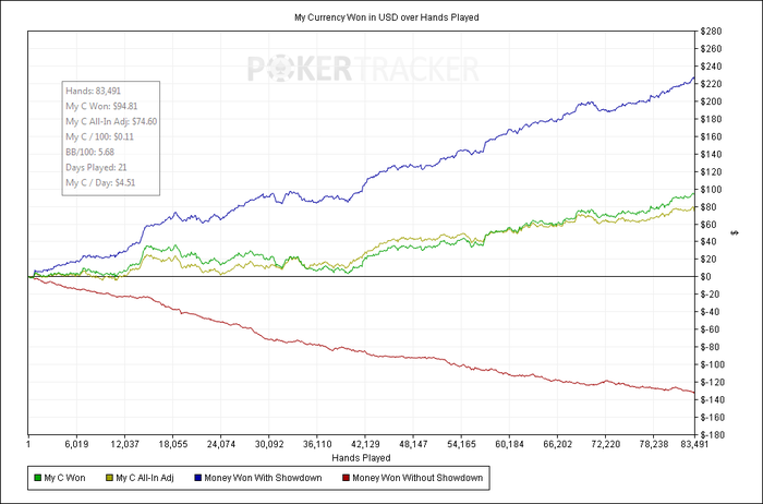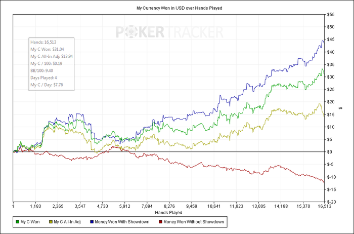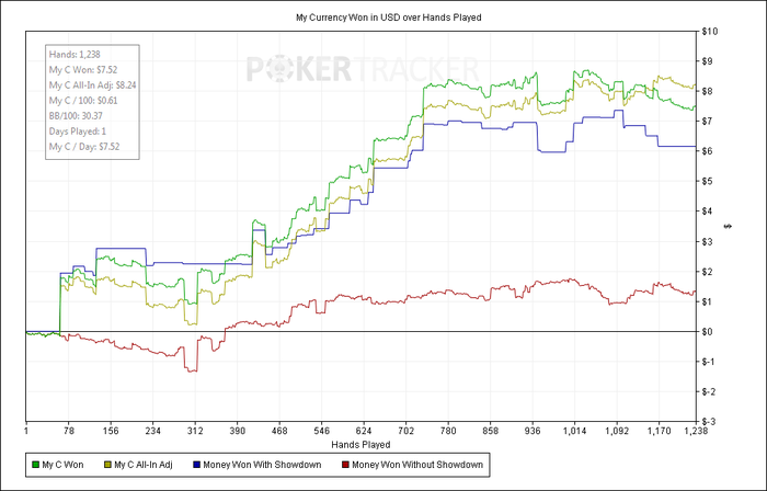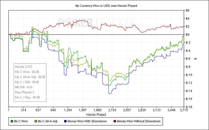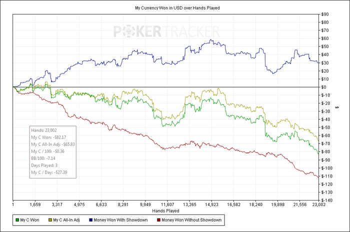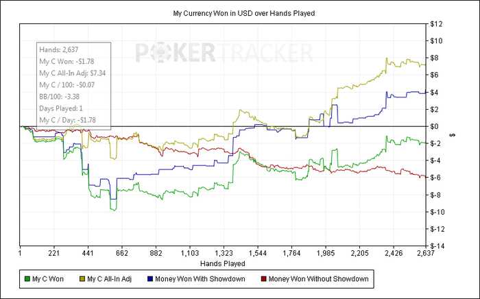 Играю очень плохо, непонимаю что происходит за столами, так еще и перебираю по ев, снова скатился в катку в ноль