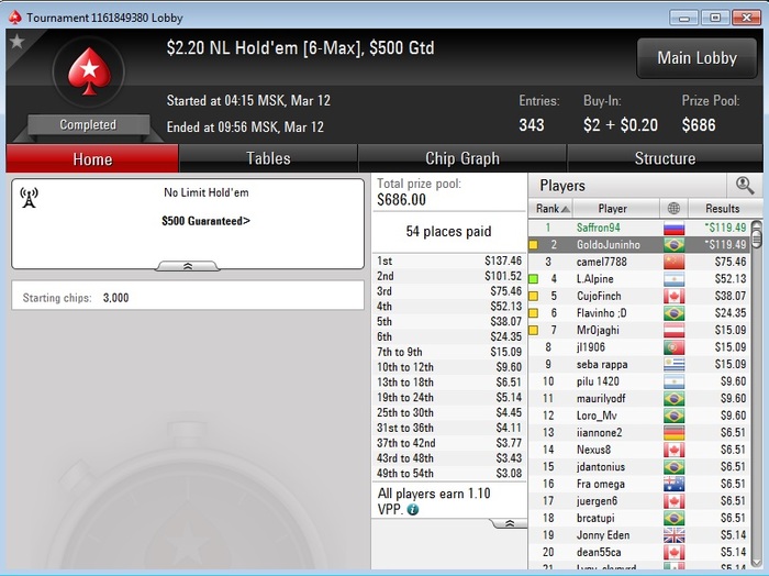 но в итоге удалось сделать 2 финалки, одну на фтп, там я накосячил т.к. у 5 из 8 человек были стеки 9-10 бб и у менябыл стек 12бб и я там запихал 77 попал в и в итоге проиграл флешу. Можно было не пихать и пересидеть еще пару человек. а на пс все прошло гораздо лучше. в ХА поделили т.к. стеки были совсем равные.
