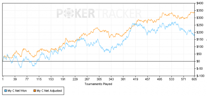 Доброго времени суток! Вообщем жизнь боль, все такое=) Но прихожу в себя по тихой, хоть и закипел среди ночи, поэтому мало сыграл. 65 турниров +15$. +11$ сат сандей шторм за фпп. Но есть и плюсы, фишара разогнал количество столов до 12 и стал чувствовать себя комфортно. Как только появится стабильный результат накинем ещё 2 стола. На днях также решиться судьба платины, бить или не бить, для этого нужно отыгрывать 117 туриков в день.