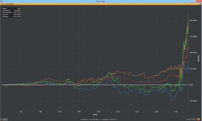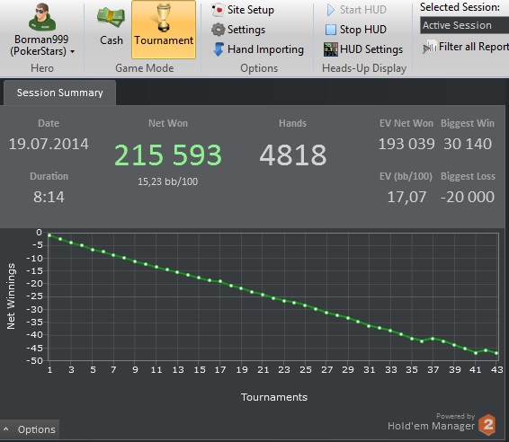 Люблю играть такие роздачи против агрорегов , сыграно чисто по динамике думаю 10+ в колоду улетели спокойно если у него они были конечно )))No Limit Holdem Tournament