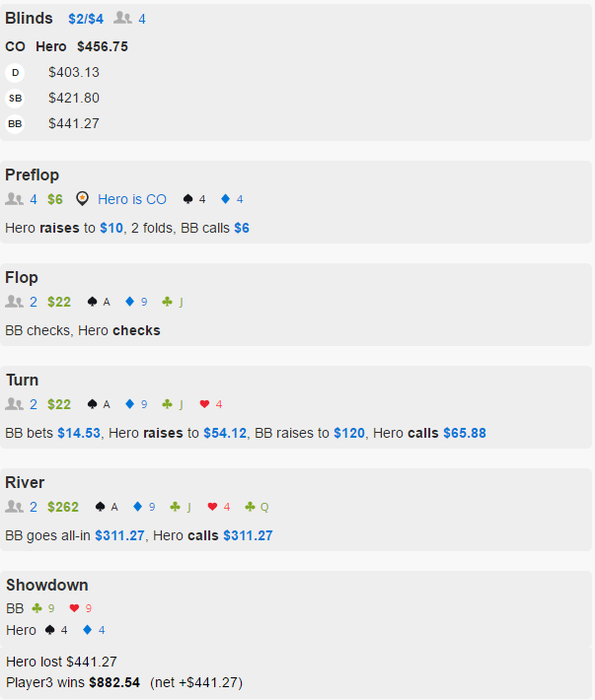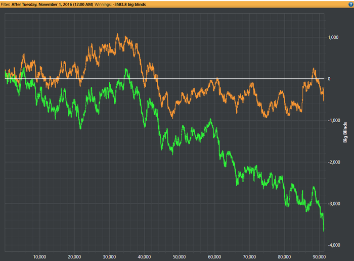 пост Пурити. Пурити мудрый. Я же приподнятым настроением похвастаться пока не могу. Сегодня решил глянуть свои резалты с ноября. Полная пизда. Я знаю, что в закатке каждому кажется, что ему сдают хуже всех, и эту фразу я себе повторил за последний месяц раз девятьсот. Как часто бывает, немалая часть недобора пришлась на 1к и 600, и благодаря этому я сейчас имею отличный банкролл для игры на нл200. Стоит отметить, что траты я особо не считал и тратил очень много и ненужно, пришло время это тоже пересмотреть. Еще фартануло с тем, что заблочили акк в говноруме на которым было несколько тысяч. Ну да ладно, как говорил Круглый "Любишь медок - люби и холодок". В ближайшее время буду стараться по крупицам нарастить банкролл, делать все нормально и надеяться, что отпустит.