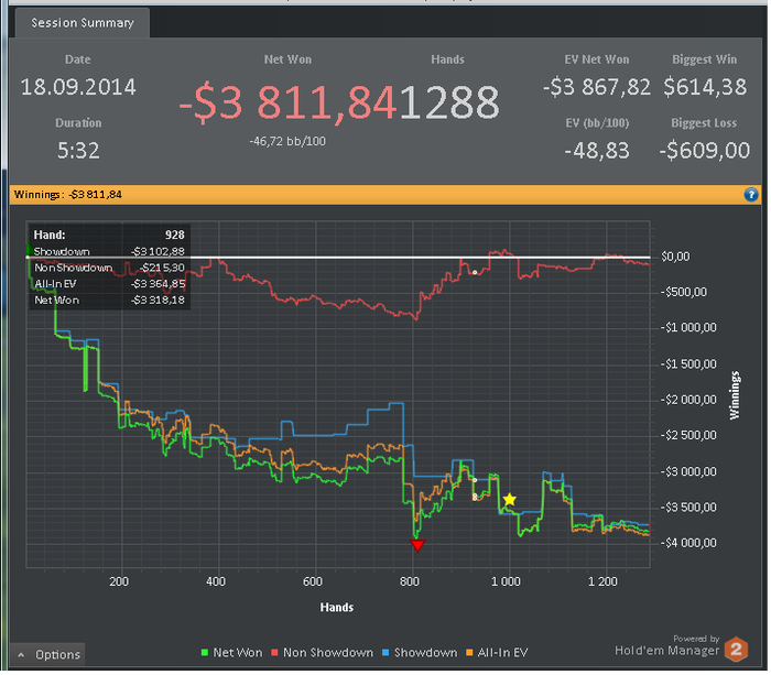 Образцово показательное выступление, хотелось для четкости 2К сделать, но у масти на этот счет были другие планы, КК<AK в концовке, решил взять таймаут, передохну и в бой!!! (нл200)