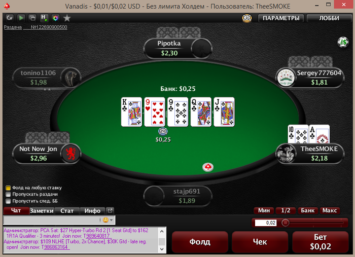evgen1y, У меня триал кончился, я куплю только тогда, когда на NL5 $100 заработаю специально на ХМ Так что NL2 я буду бить без программы играя 2 стола, фриролы (хром стар) и похожие турниры)) Я в ней уже немного разобрался за месяц и с NL5 куплю себе))И меня больше волнует не ХУД в ХМ а то, что я бы с радостью разбирал и анализировал сыгранные раздачи)