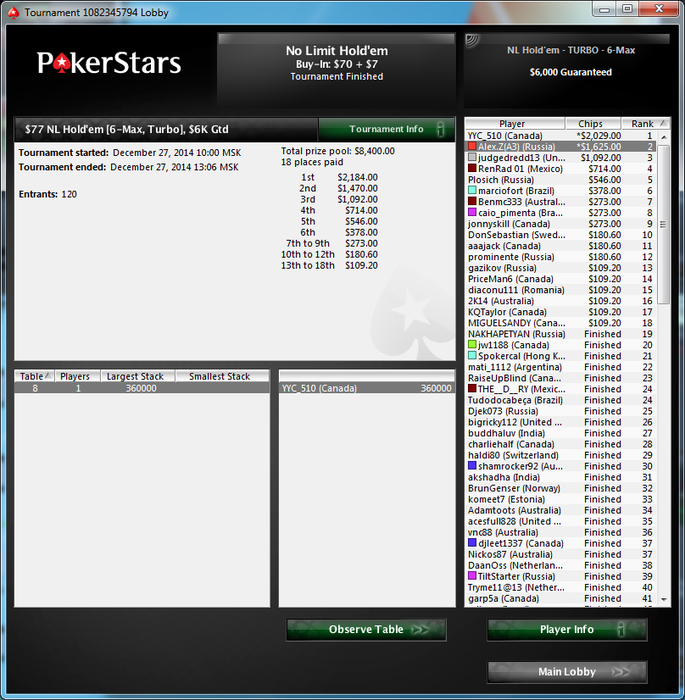 был в плюсе, благодаря турниру на 1400баксов, но из за тридцаток 18макс подступило почти на штуку.