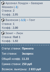 тема сегодня азартная: условия игры(друзъя). сначала обговариваются условия кф при которых в определенной прогрессии делаются прогнозы. к примеру: 1.40-1.60; 1.80-2.10: 3.20-х. участвуют три игрока, каждый игрок по очередности делает по одному прогнозу на исход события и так по часовой стрелке. соответственно делать пресс на эти три события! но! если как правило будут играть чаще два прогноза то скорее всего это и будет залог адекватного прогнозирования при котором можно будет играть в +.
