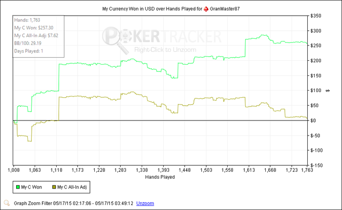 PokerStars - $0.50 NL (6 max) - Holdem - 5 playersHand converted by PokerTracker 4CO: $84.53