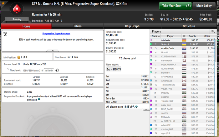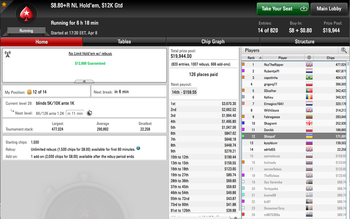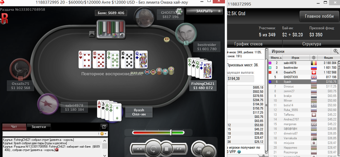 После этого я их обоих нокнул и занес собственно. Попал на фестиваль дерибанов от покерстарс. Дерибан застал на финалке турбины за 16, может это и хорошо, потому что 240секундные таймбанки довели меня до ручки.