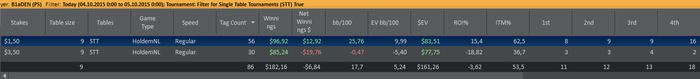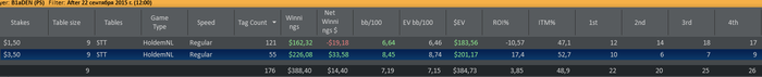 Сегодня ситуация поменялась, если в турнирах 1,5 как то удавалось наживать (несмотря на огромное количество 4х мест), то в 3,5 простоничего не складывалось. за сегодня