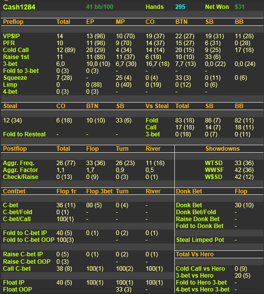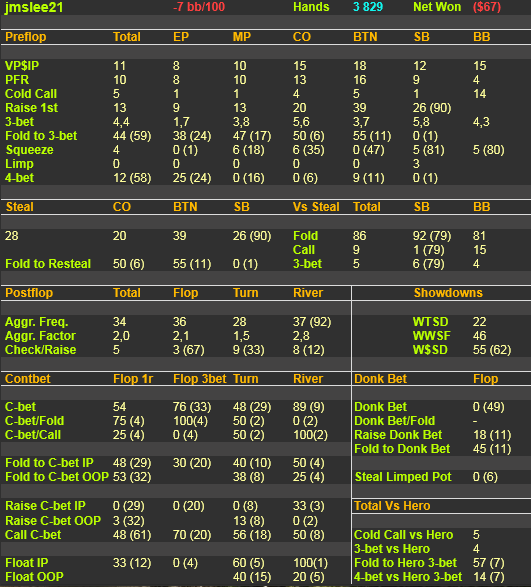 Ворон, мне твои статы не нравятся. А если мне не нравятся твои статы, то все очень плохо. Конечно ты мог поймать даунстрик, но как ты объяснишь 4бет ренж 1% в ЕП и МП? Как объяснишь 3бет 1% вс ЕП? И это только начало...