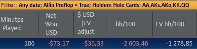 Majkdern @ 19.11.2015 Правду говорят. Реги сумасшедшие, играть невозможно было, постоянно 3бетят, играть не дают, уровень игры сильный, даже фиш не позволяет уравнять эту доминацию над нами, тяжело вообщем там играть + 6 столов это пиздец нудно.