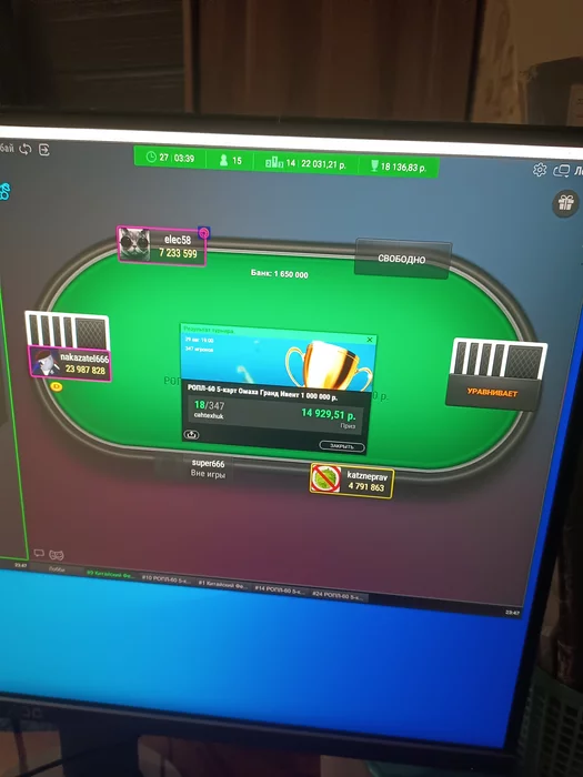 К сожалению в обоих турнирах под конец под обосрался. Особенно в омахе, хоть и поехал сверху, нужно было переждать 2бб стек за пейджамп 3к.Ну + не минус.