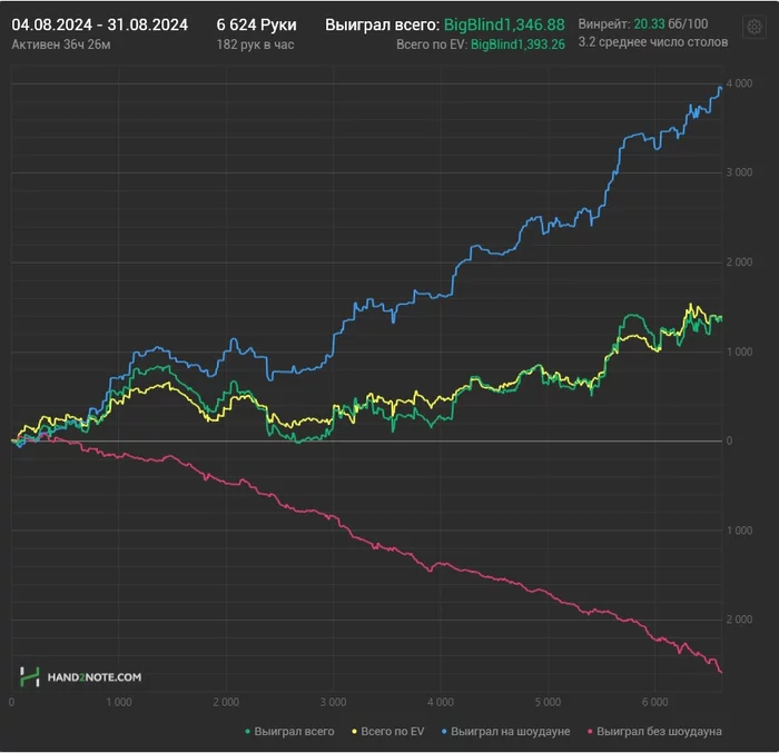 Август меня встретил положительно. Играю +- ПЛО20. Банкролл с ощутимым запасом позволяет играть на несколько лимитов выше, но пока набираю форму не тороплюсь играть выше.