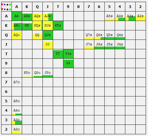 Если випы - просто благодарю покерных богов, что попал за этот стол. В 100бб мой префлоп не будет сильно отличаться, хотя это не правильно, мы должны дефать бб прилично лузовее, но учитывая что стол с анте не часто, проще играть свои споты чем тратить концентрацию на отдельный стол, разыгрывая не привычные споты, но держу в голове, что все защиты будут чуть лузовее от регов и может быть чуть больше агр флопа от меня, и чуть сейфовее ривер с нулевым ев пуша - бета ривера, на закрывшихся бекдорах которые мне не подходят и наоборот.