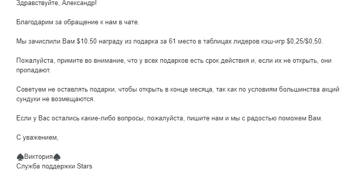 FairyTail, я нашёл только (в обычных старзах которые ком) отправить им сообщение только, где указываешь категорию вопроса типо депозит/покер/верификация и тд