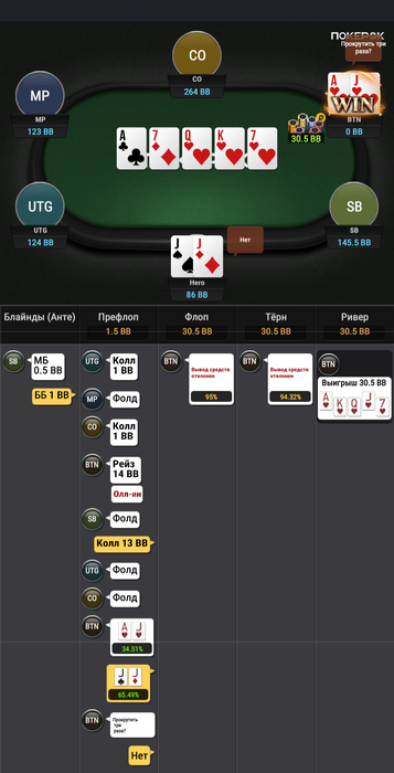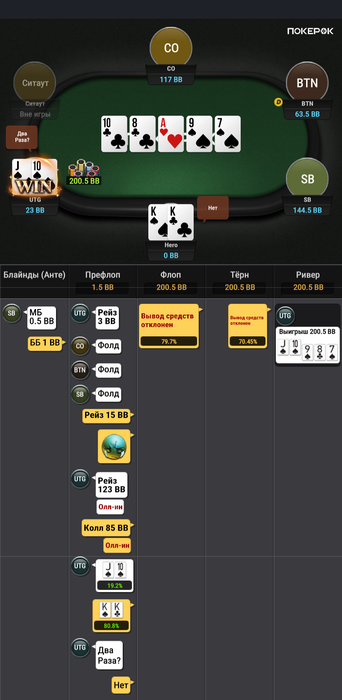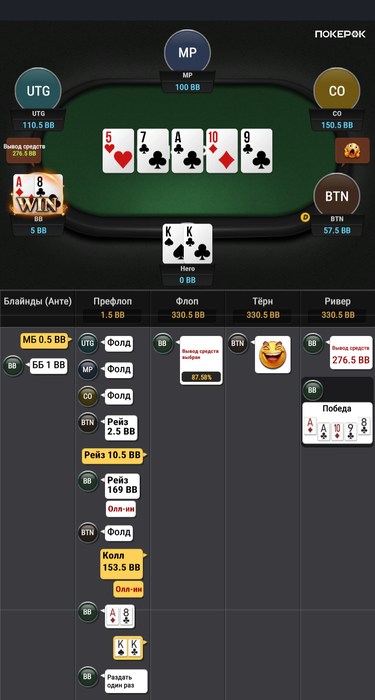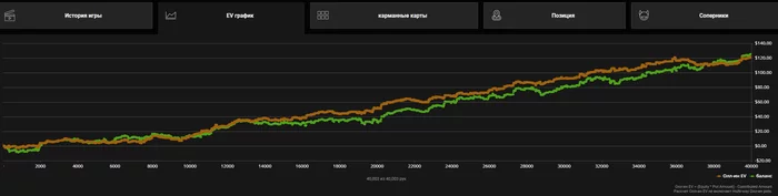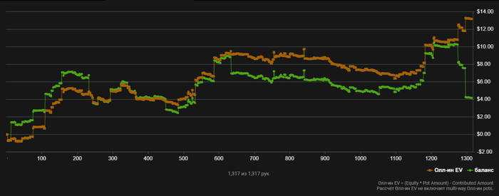 без билетов, но с удовольствием, спасибо! закрыл крестиком после очередного обнуления стека. график плюсовый +ев, по кассе минус 7 стеков. как это в очередной раз сочетается, я не знаю - видимо "выпадают" стековые раздачи. как люди здесь плюсуют и зарабатывают, рейкбеком наверное.