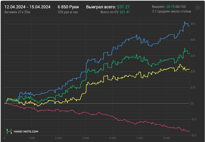 По кешу. Из-за турнира и стрима я очень сильно волновался. ПРопускал раздачи за кеш столами. Не вдумываясь в игру, пока не вылетел из турнира. В итоге кеш закончил так