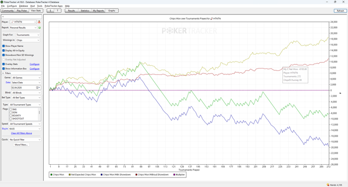 На самом деле выглядит страшно, недобрать 135би за 1878 турнира (-243 ев, -1595 фактический). Завтра наверное поиграю десятки (на пятерках точно делать нечего с такими очками). Ну и наверное поиграю немного тройки мбр фо фан, если будет настроение.
