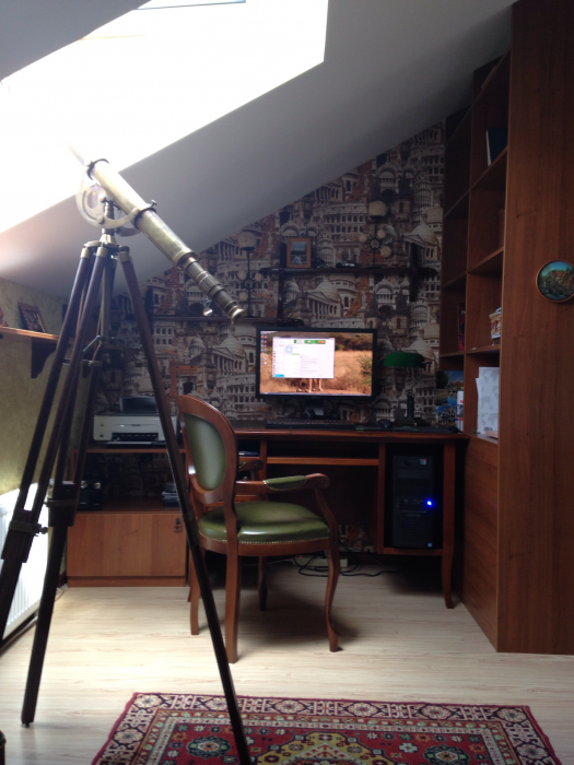 С аккаунтами все порешал. Сейчас нахожусь в подмосковье у родителей девушки, еле-еле перевезли на поезде процессор с монитором...Мне выделили уютный 3-й этаж в доме, сейчас все установил, теперь мое рабочее место выглядит так: вид сзади