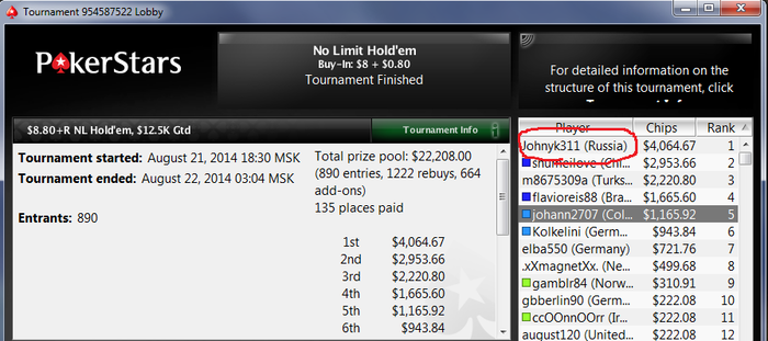 Недавно начал играть на 888, вчера удалось выиграть там свой первый турнир, но почему то на сайтах покерной статистики рез-т не отобразился, есть только в ХМе...
