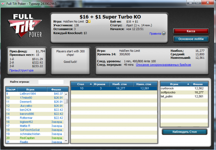 И ещё 3 итм в 27 турбо нокауте, 11 фризаут на фтп, и супер нокаут за 10.5 с 3мя фрагами(15$)