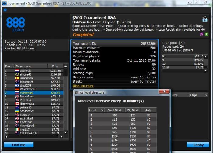 788 из 7505 - по-моему это вообще самое большое поле против которого мне приходилось играть (не считая убийственных фрироллов от ЕПТ). Даже ПС не очень то хорошо справлялся с отображением лобби, из-за чего было свсем не понятно когда же денежный баббл. Благо, один из членов команде зешел со своего компа и мне пересказал всы унеобходимую инфу. Вот вам еще один плюс покерной команды