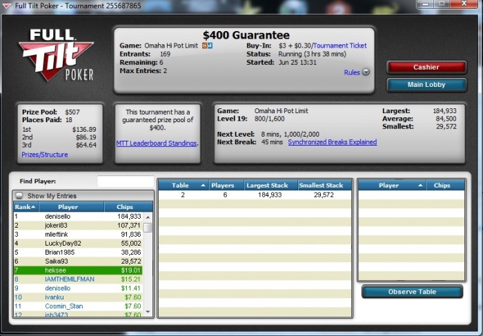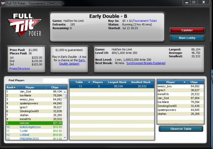 Фул Тилт: 90 игр +703$