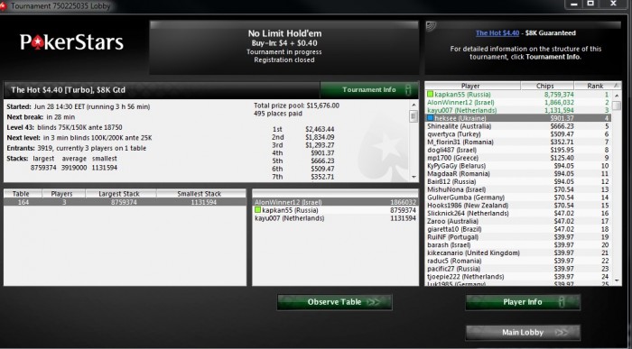 heksee @ 1.6.2013 июнь постараюсь катать на полную около 400 турниров ну и профит около 800$ .и меньше пить , определенно нужно меньше пить в этом месяце.GL!!!