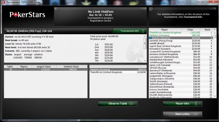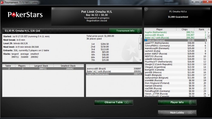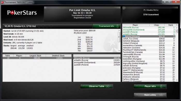 Покер Старс: 187 игр +1134$