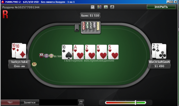 Закончил ебанный хеадз ап, ничего я не могу поделать с доездами закрывает мой алын на К8h и все червы.Расстроен от того, что таких опов нужно проходить, но не получается он даже с 375 фишек умудряеться крутиться...