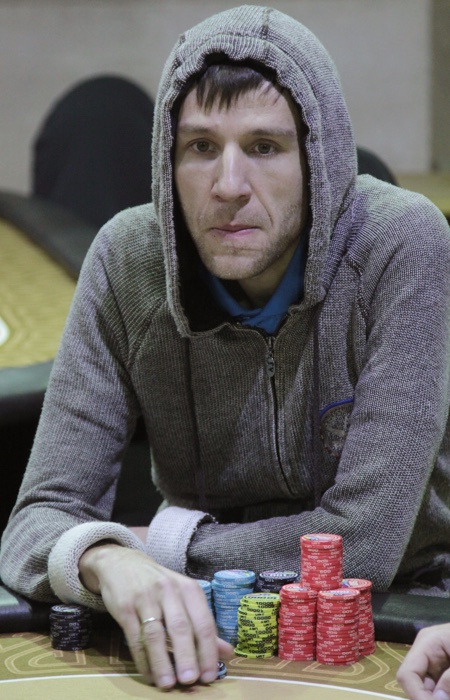 Чиплидер первого дня UPS Main Event Каха Сабаури держит соперников в черном теле, и не стесняясь использует свой стек. Надо сильно постараться для того, чтобы заставить его выбросить карты в пас. Только что это удалось Сергею Меньшову с помощью 5-бета и видимой готовности пойти в олл-ин.